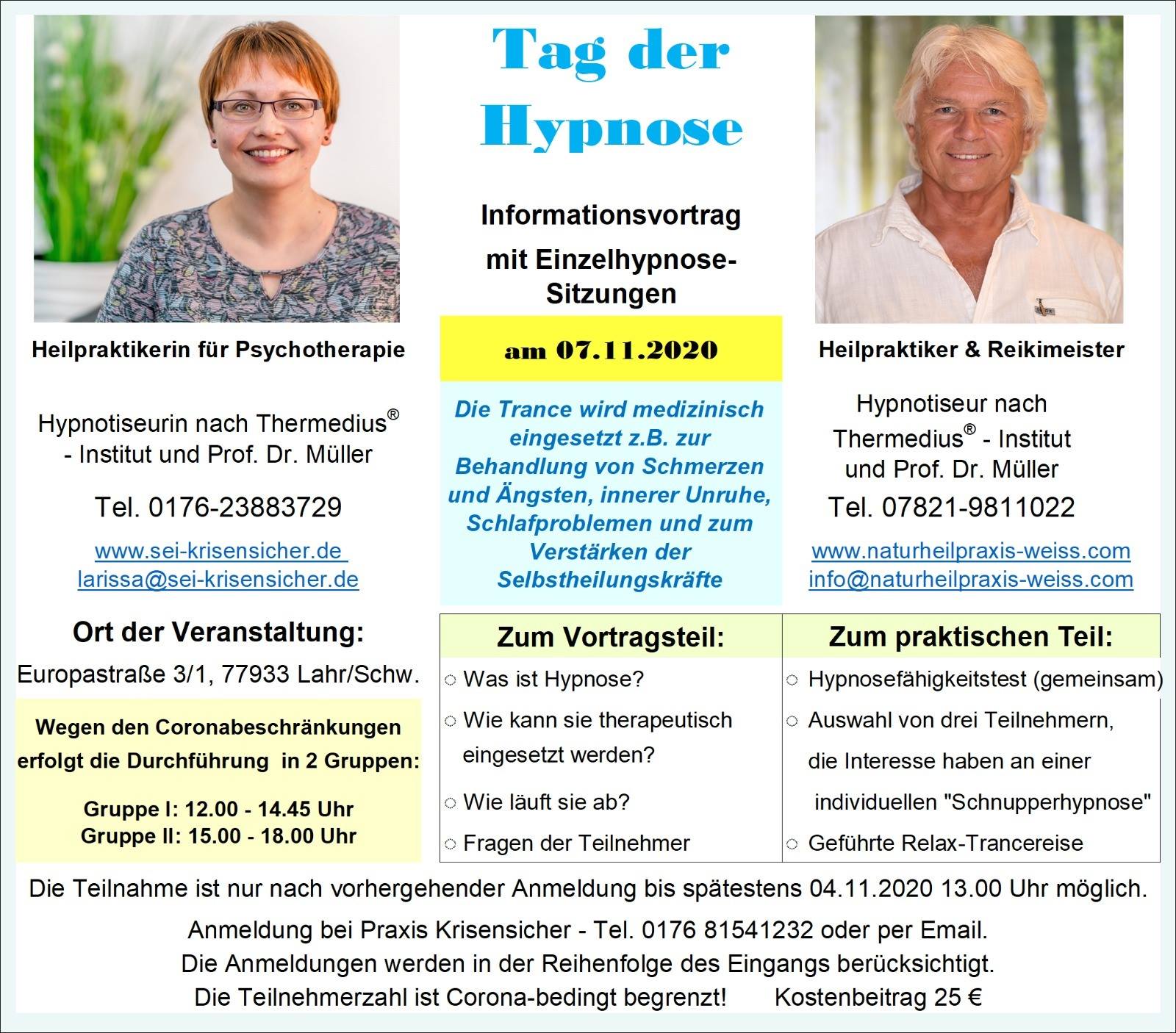 Tag der Hypnose - mit Schnupperhypnose am 07.11.2020 in Lahr/Schw.